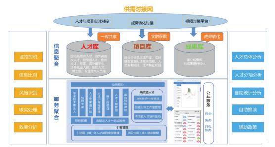 (3)告别“割裂化 ”监管,实现全市人才数据、人才项目、人才 平台、人才资金等“一张网”监管针对人才工作部门多、政策多、项目多等带来的监管难题,平台 实行全市人才数据、项目、平台、资金等统一管理,为有效监管提供 技术支撑。