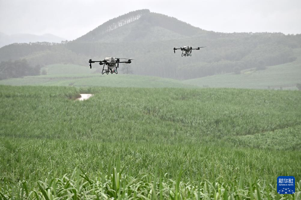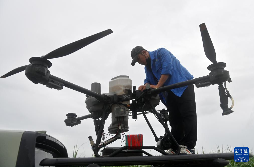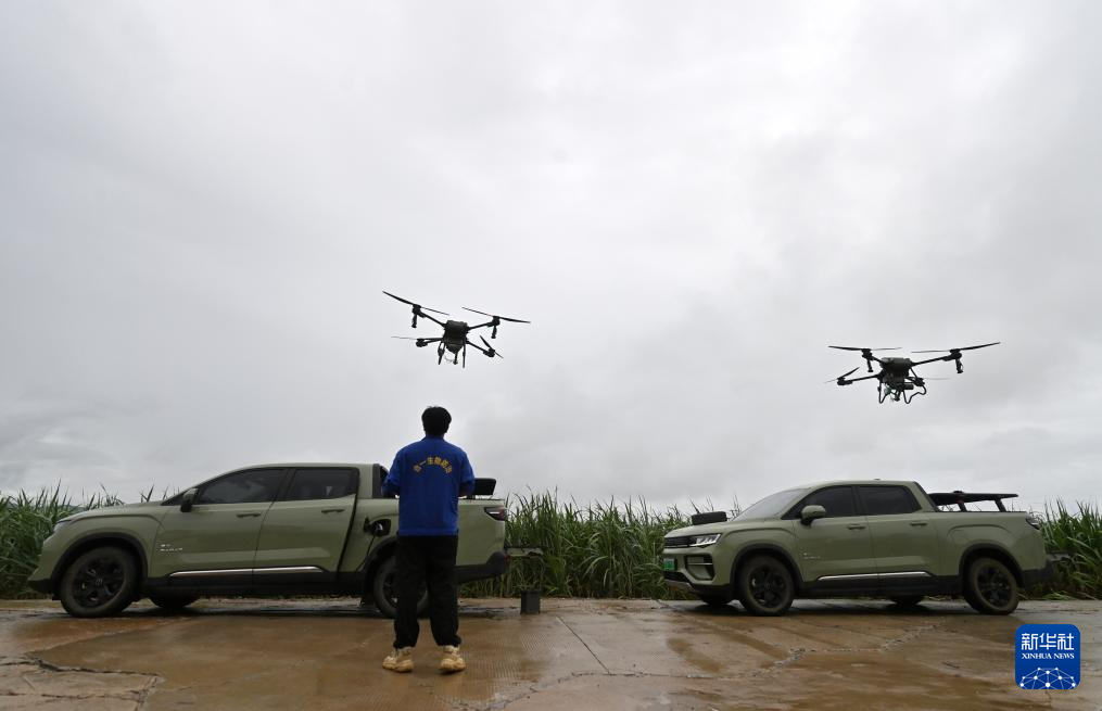 7月23日,在位于广西上思县的昌菱农场蔗区,技术人员操控无人机。新华社记者 陆波岸 摄